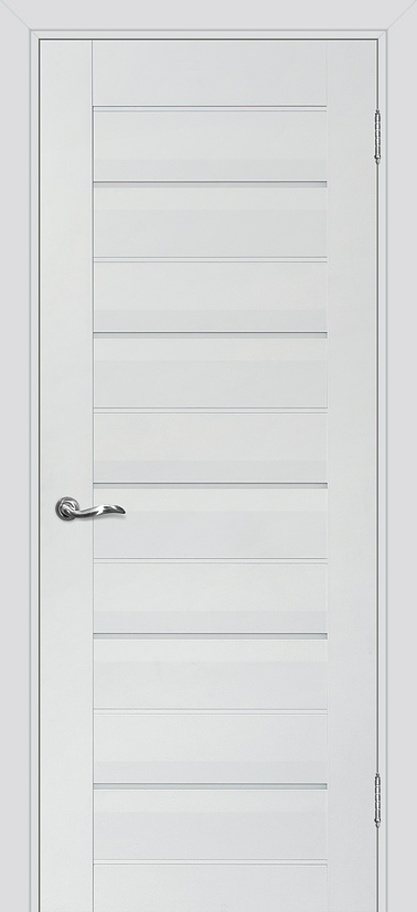 Царговое полотно, выполненное в гладком матовом покрытии, приятным на ощупь. Бескромочная технология. Сборно-разборная конструкция. В данной модели используется декоративный молдинг в глянцевом белом покрытии и стекло LACOBEL