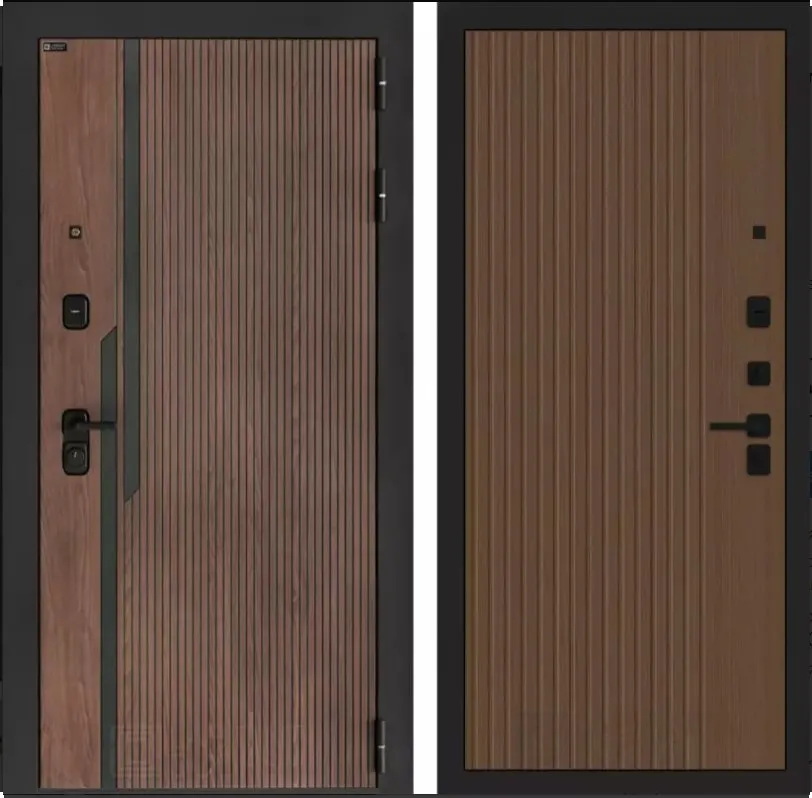 Фурнитура TOR черная: Броненакладка врезная, сувальдные накладки, глазок сбоку (врезан), дверная ручка, ночная задвижка. Цилиндр ключ-вертушка (производитель не регламентируется),