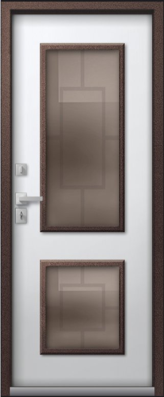 В конструкции двери Т-1 PREMIUM используется двухкамерный стеклопакет толщиной 48 мм, цвет Бронза с низкоэмиссионным энергосберегающим покрытием, сохраняющим тепло внутри дома. С внешней части стеклопакета установлена декоративная металлическая решетка. Эта дверь станет украшением Вашего дома
